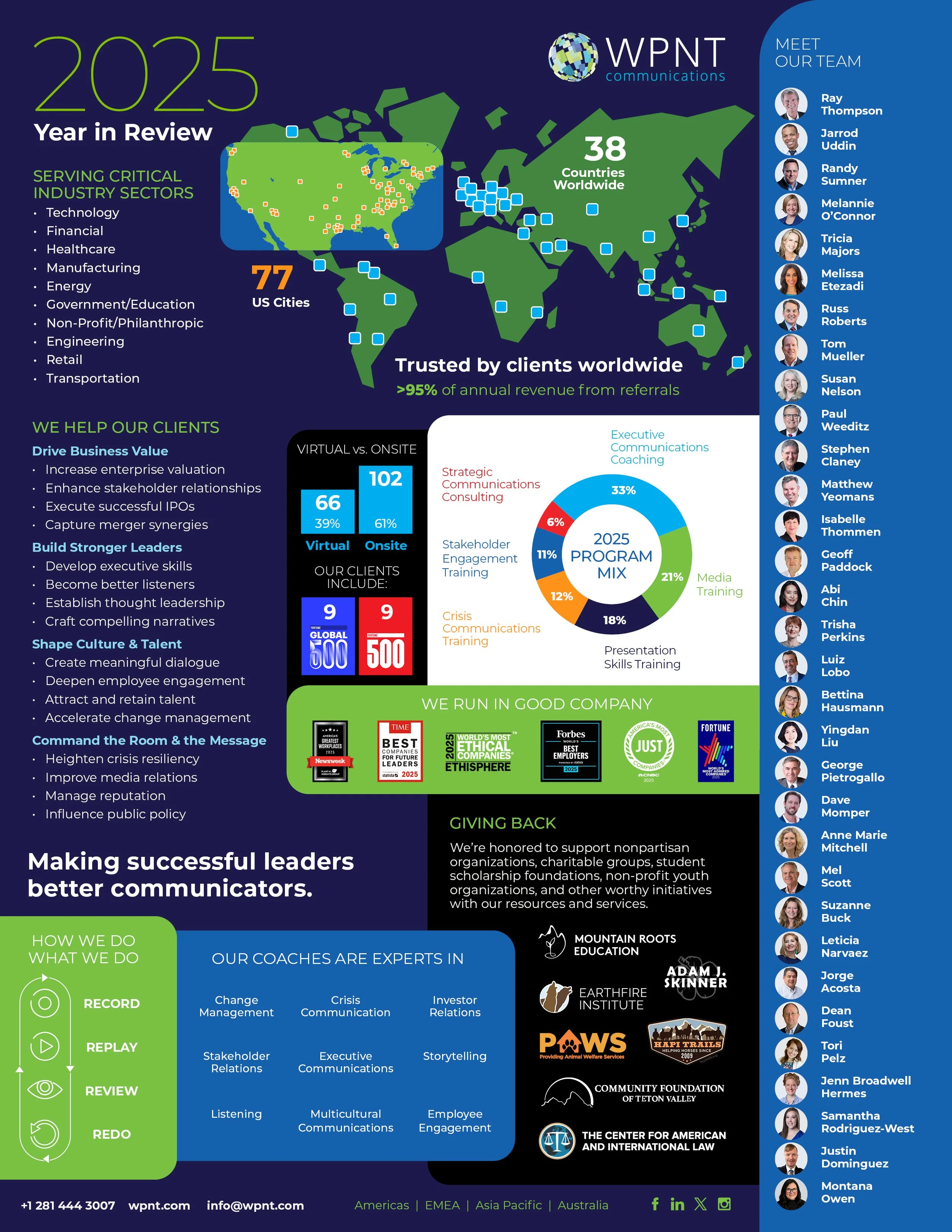 WPNT is the preferred global communications training firm for Fortune 50 multinational companies, as well as many smaller and growing businesses. All our programs are offered both online or in the classroom.
